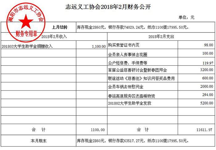 志远义工协会2018年2月收入支出明细
