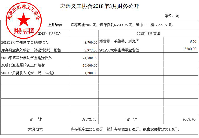 志远义工协会2018年3月收入支出明细