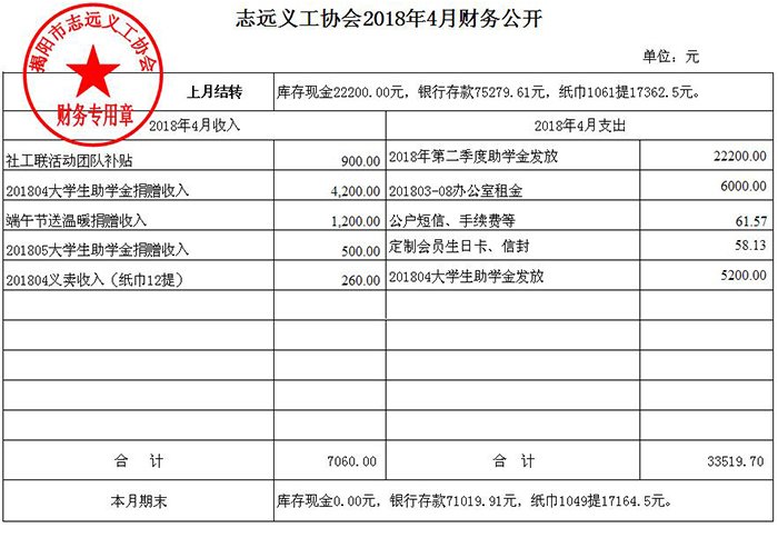 志远义工协会2018年4月收入支出明细